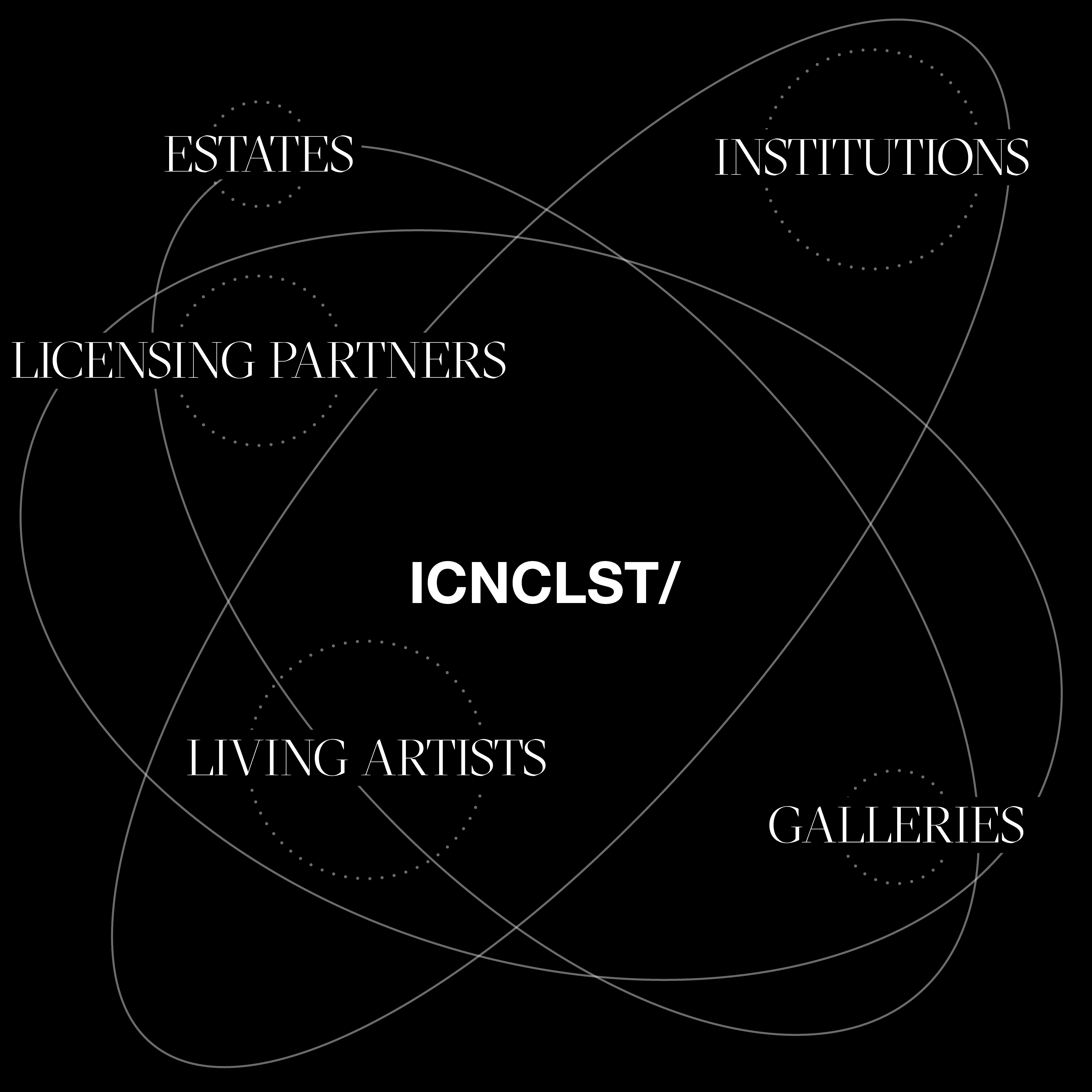 With deep industry roots and firsthand experience, we empower creatives to do what they do best — create. Founded in 2015, ICNCLST/ bridges business and art through transparent artist representation.