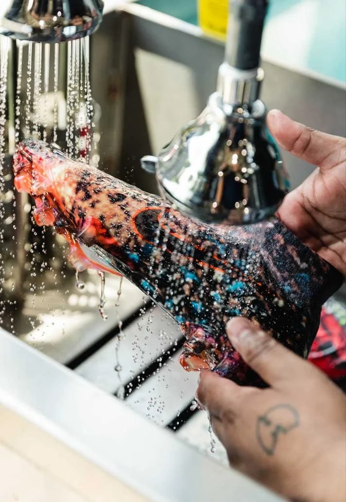 Andrade developed a repeat pattern for the Mercurial Superfly 360 boots inspired by the explosive energy of fans celebrating a goal. The vibrant design, reminiscent of flares and silhouettes, was applied across all custom boots, accompanied by matching 1-of-1 jerseys.